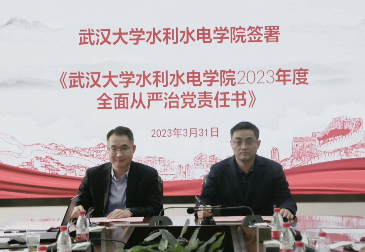 3月31日下午,水利水电学院召开全面从严治党工作会议并签订全面从严治党责任书。会议由党委书记李典庆主持,学院党委委员、院及国重领导班子成员、系(中心)主任及党支部书记、内设机构主任及副主任参加会议。