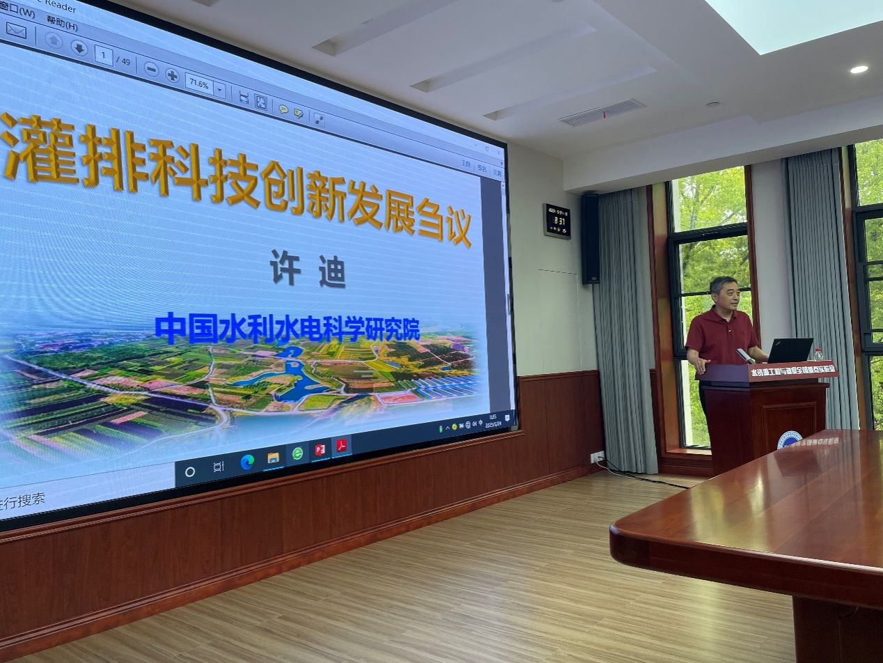 伍靖伟院长首先介绍了本次会议的召开背景和重要意义,回顾了习近平总书记在中央农村工作会议、中国共产党第二十次全国代表大会上和听取陕西省委和省政府工作汇报时的讲话,介绍了农业农村工作与农业水利学科发展的相互关系,明确灌排科技发展的重要性。并介绍了中国水科院许迪所长在水利科技工作领域取得的主要贡献。