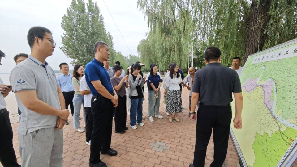水利与民生息息相关。菏泽是黄河入鲁第一市,郓城县黄河流经28公里,是山东省实施黄河重大战略的重要县份。实践队在当地负责人的带领下参观大尹庄水闸,从旧貌换新颜中领悟到水利工程对交通、防洪、农业灌溉及旅游的多重贡献,深感水利建设对民生的深远影响;在杨集险工八号坝,实践队认真聆听专家讲解沿岸防汛工程建设,感受到防汛工程的坚固与水利人的坚守,对黄河防汛的重要性有了更直观的认识。